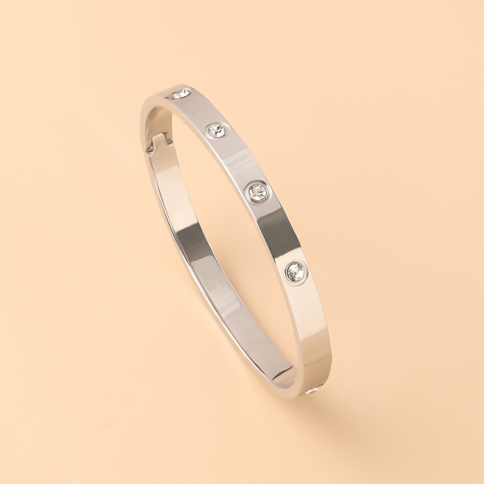Fabriqué en acier inoxydable de haute qualité avec placage or 18 carats et étanche, ce jonc est étanche, ne ternit pas et est conçu pour un éclat durable. Le fermoir sécurisé assure un ajustement confortable et fiable.